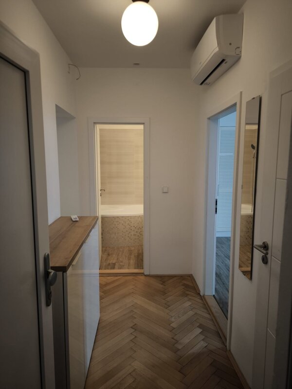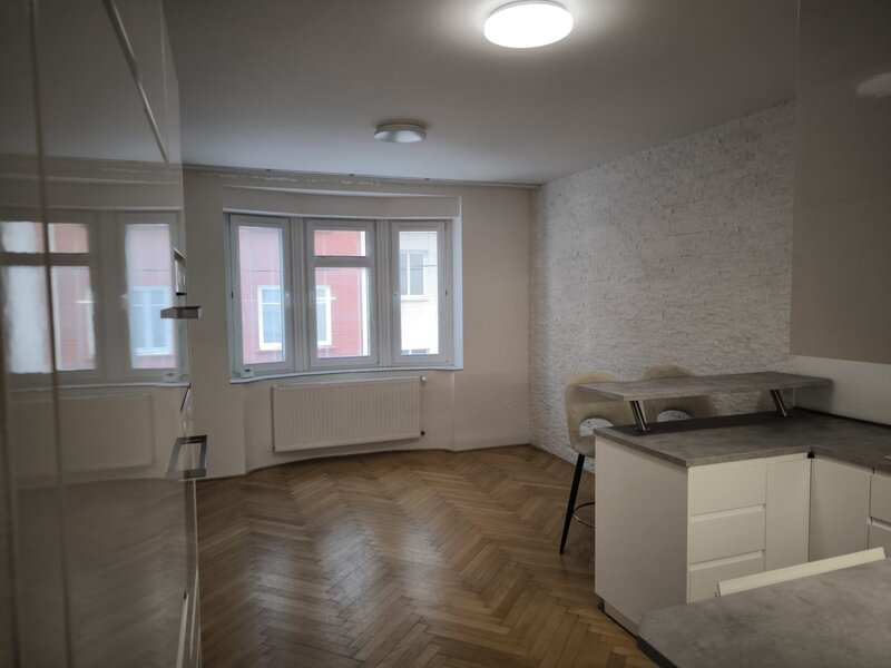 Nabízíme exklusivně k dlouhodobému pronájmu nadstandardní byt 3+kk s klimatizací situovaný ve II.NP revitalizovaného cihlového domu. Krásný byt po nedávno dokončené rekonstrukci, použity velmi kvalitní materiály, kuchyňská linka s vestavnými spotřebiči a vestavné skříně na míru. Vytápění a ohřev vody plynovým kondenzačním kotlem. Klidná lokalita v těsné blízkosti centra města. Parkování u domu. Měsíční nájemné 12.100,– + záloha na provozní náklady 5.800,–. Vratná kauce 25.000,–. Provize RK 15.000,–. Volný ihned.