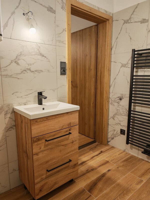 V bytě použity nadstandardní materiály: vinylová podlaha, interiérové